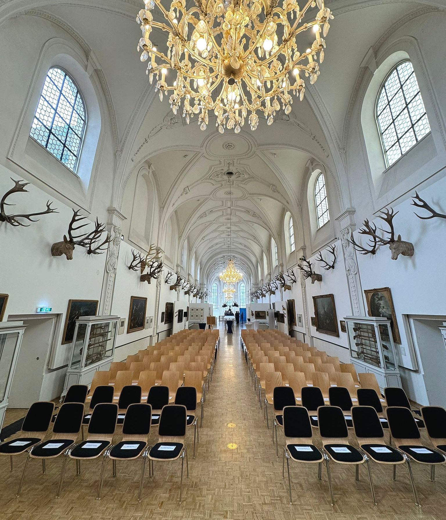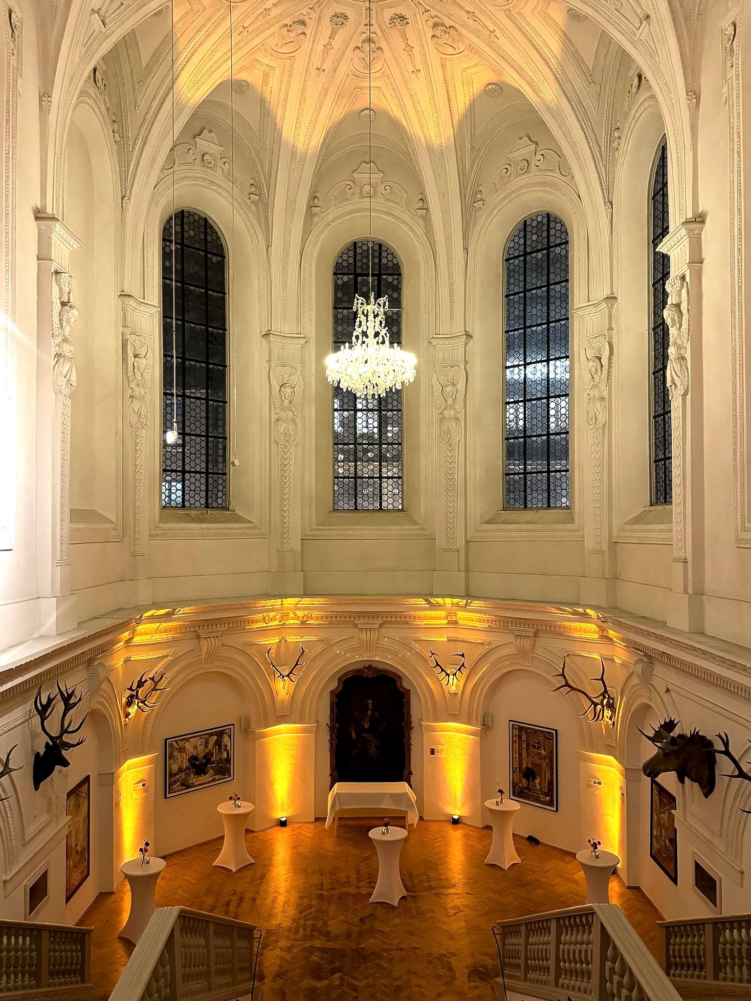 In dem 10 m hohen Raum mit herrlichem Stuck